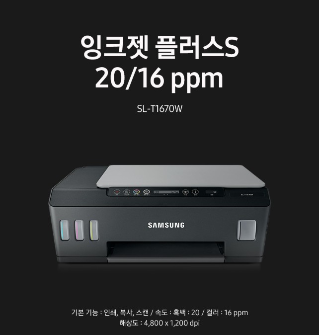 삼성전자 잉크젯 플러스S 빌트인 복합기 SL-T1670W 드라이버 다운로드 설치