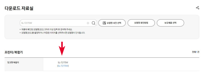 2. 사이트를 연결할 수 있는 링크가 나오면 바로 클릭해서 접속하고 검색창에 모델명을 입력한다.